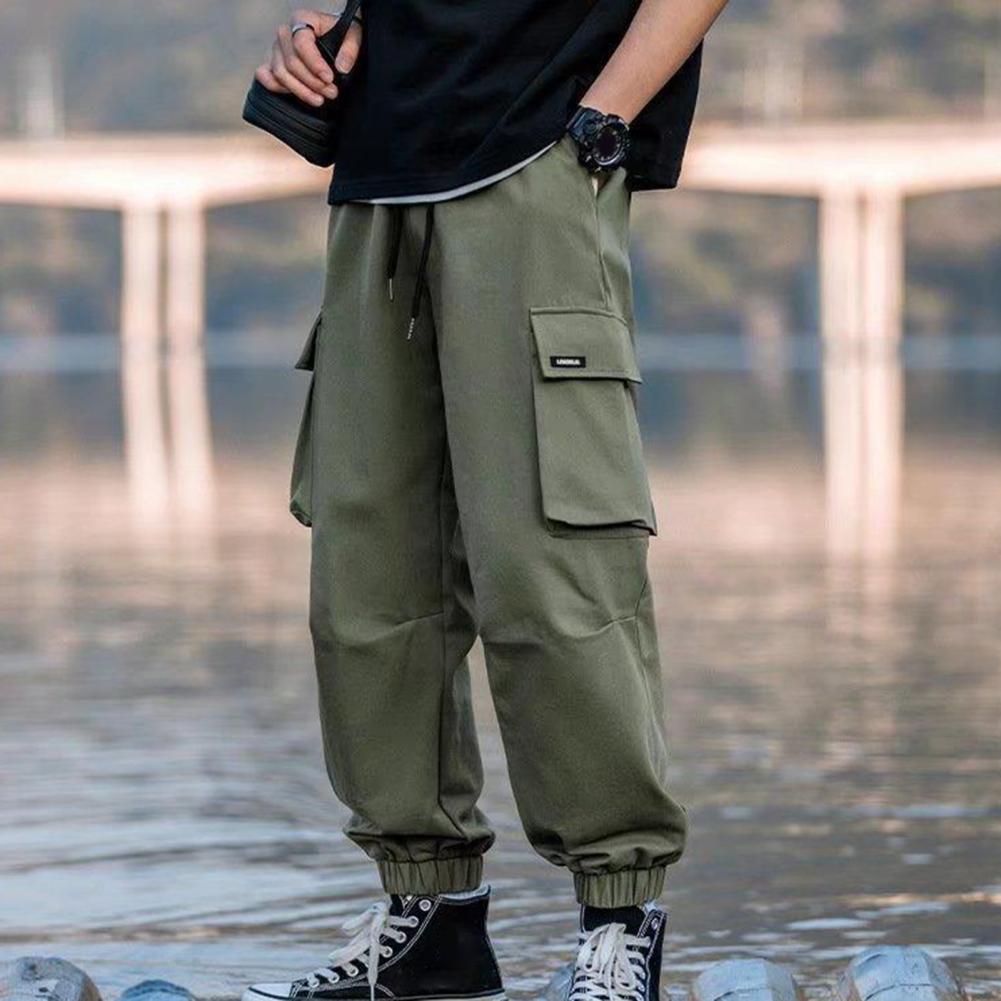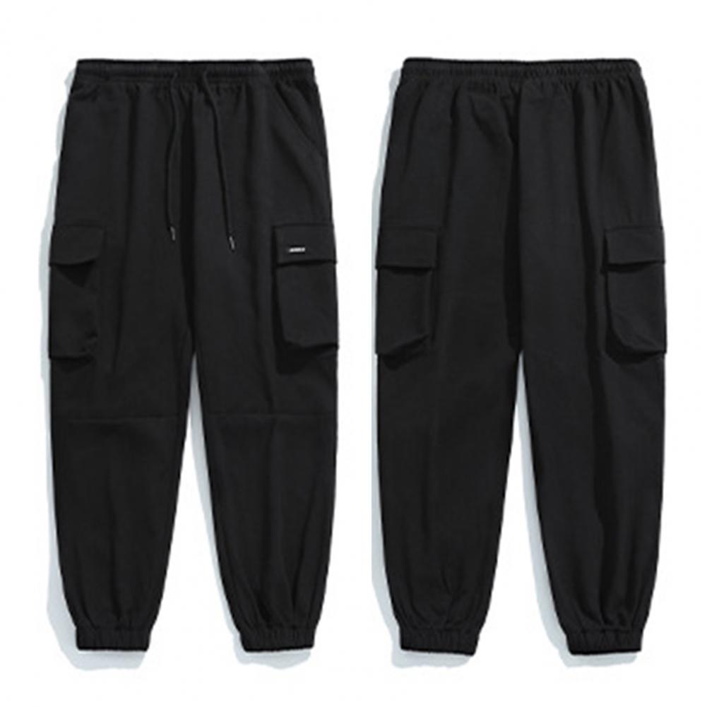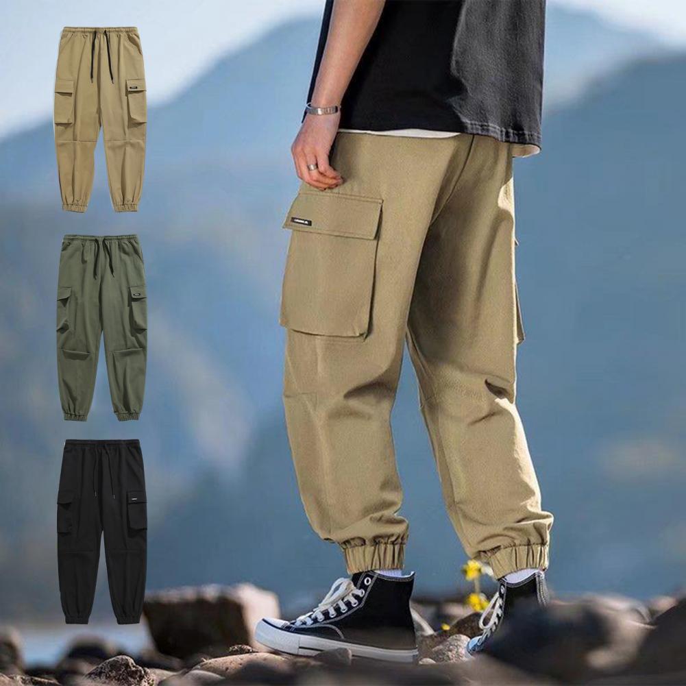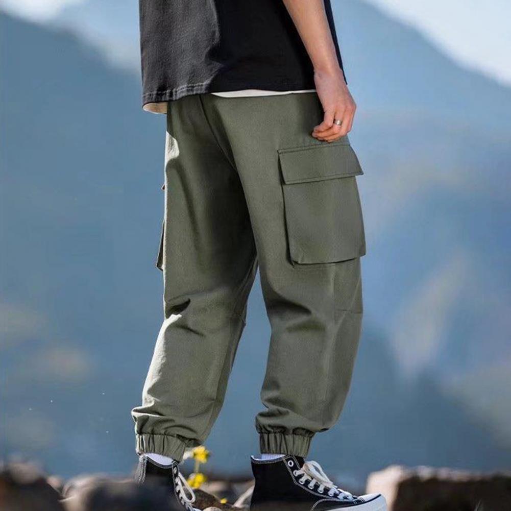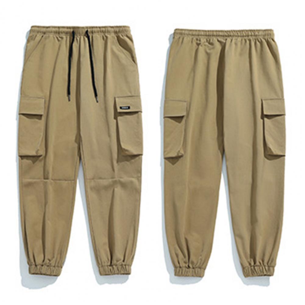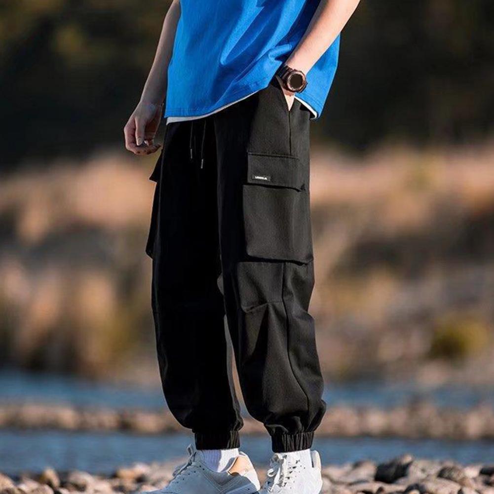 Мужские брюки карго, однотонные, с эластичной резинкой на талии, с большими карманами, на завязках, свободные, уличные, с завязками на лодыжке, штаны для работы