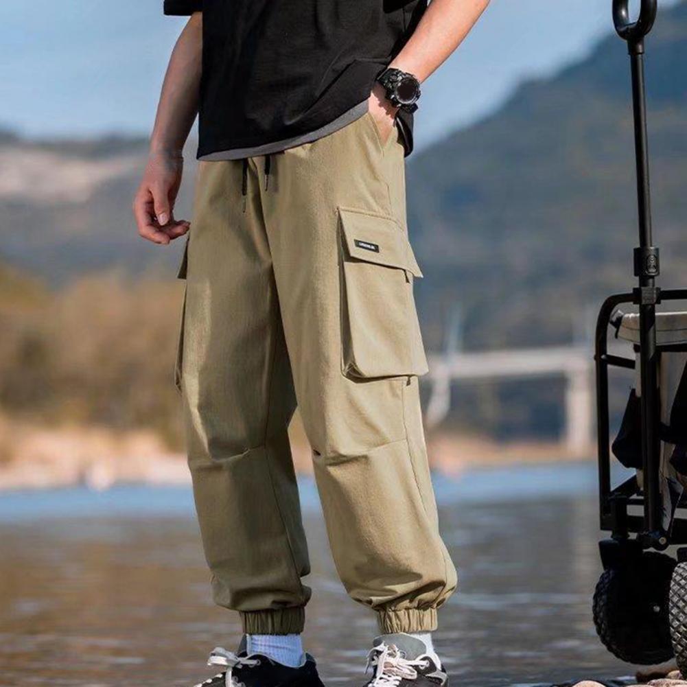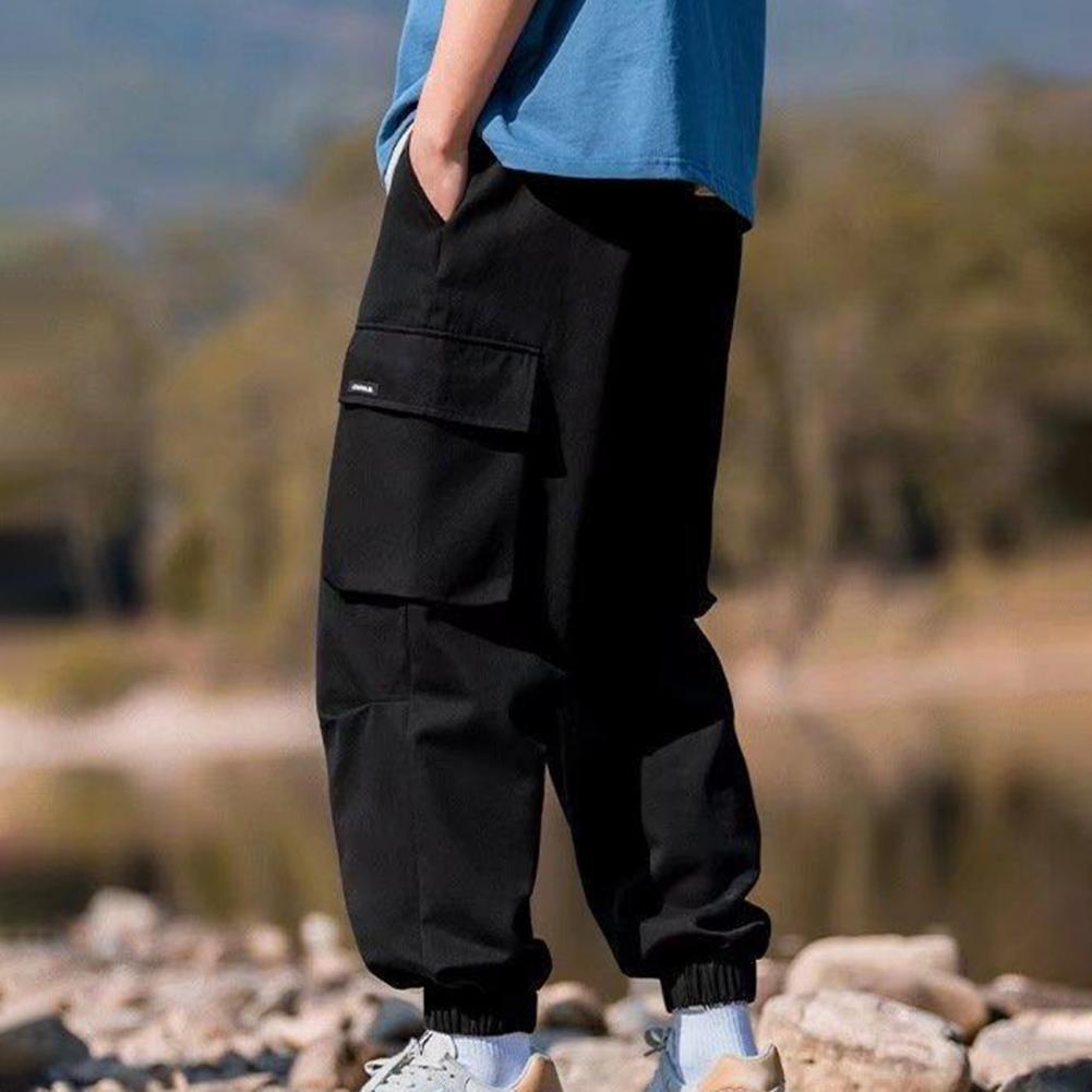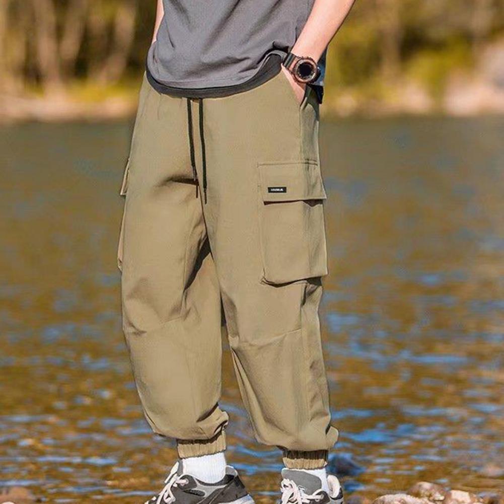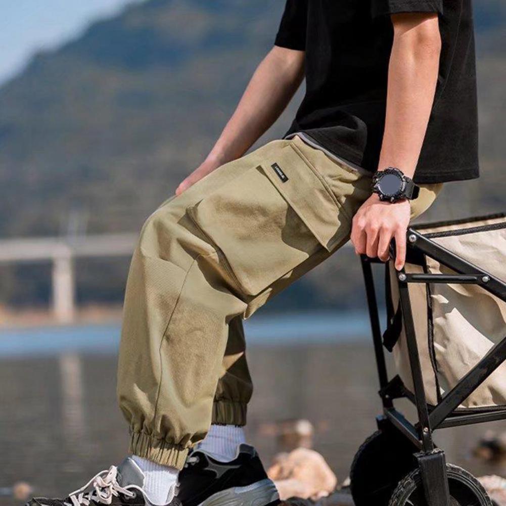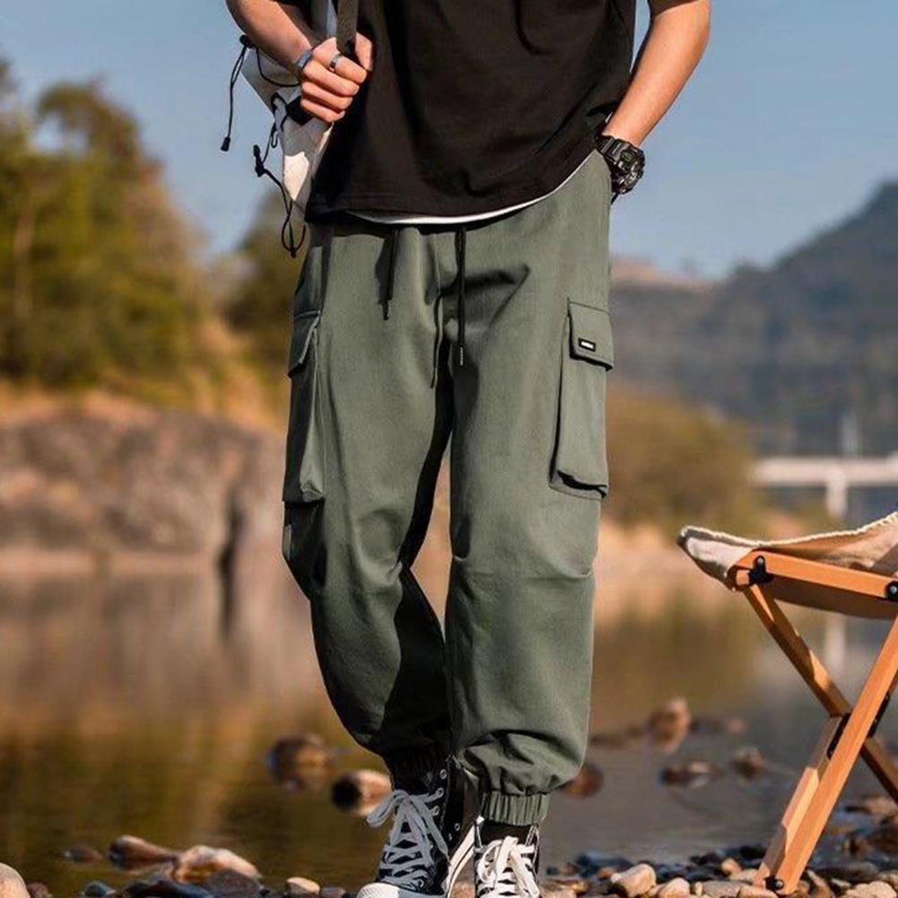Мужские брюки карго, однотонные, с эластичной резинкой на талии, с большими карманами, на завязках, свободные, уличные, с завязками на лодыжке, штаны для работы