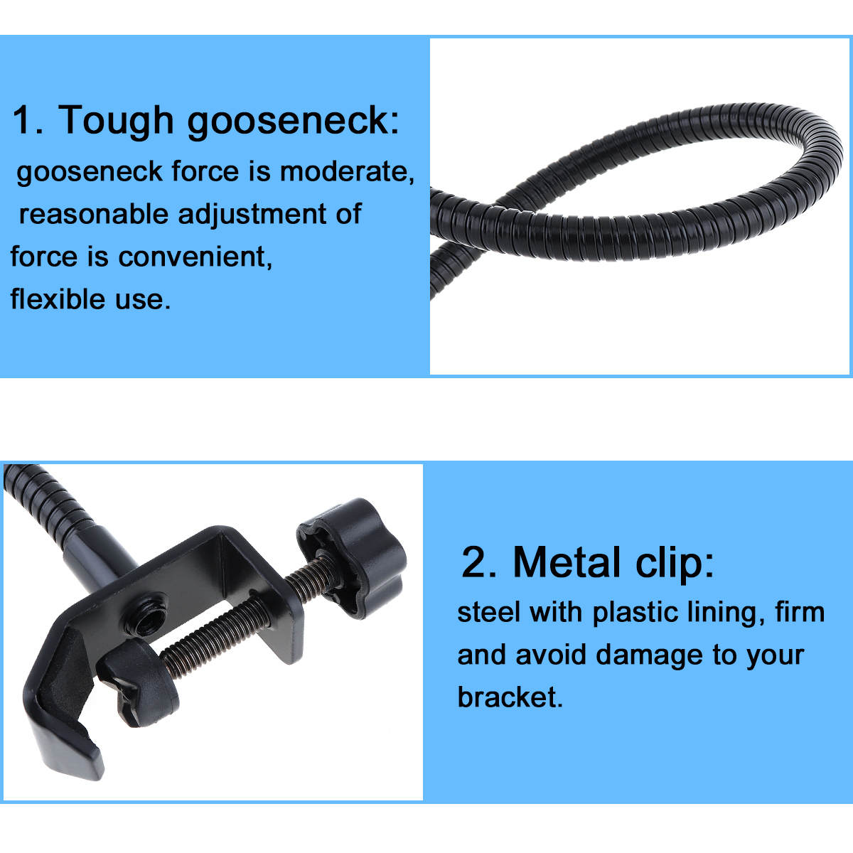 -Регулируемый крепежный зажим, подходит для большинства опор и прост в использовании.