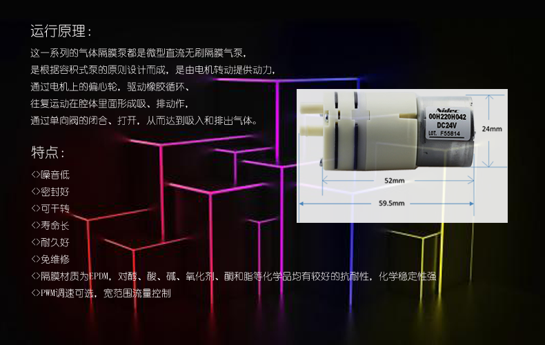 Длительный срок службы, низкий уровень шума, высокое качество, 320±80 мл/м для расходомера жидкости и 60-90 кПа давления, с химической пленкой насоса, может переносить любую химическую жидкость, скорость вращения регулируется и контролируется, энергосбережение подходит для вождения батареи, Бесщеточный Водяной насос постоянного тока