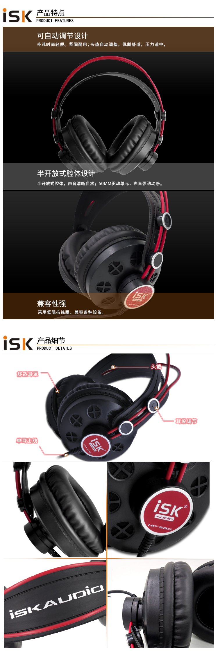 Оригинальные модные и стильные ISK 580 мониторные наушники Hi-Fi наушники применить, что мы можем наслаждаться музыкой, просмотра фильмов и мониторы