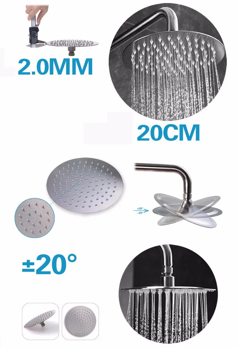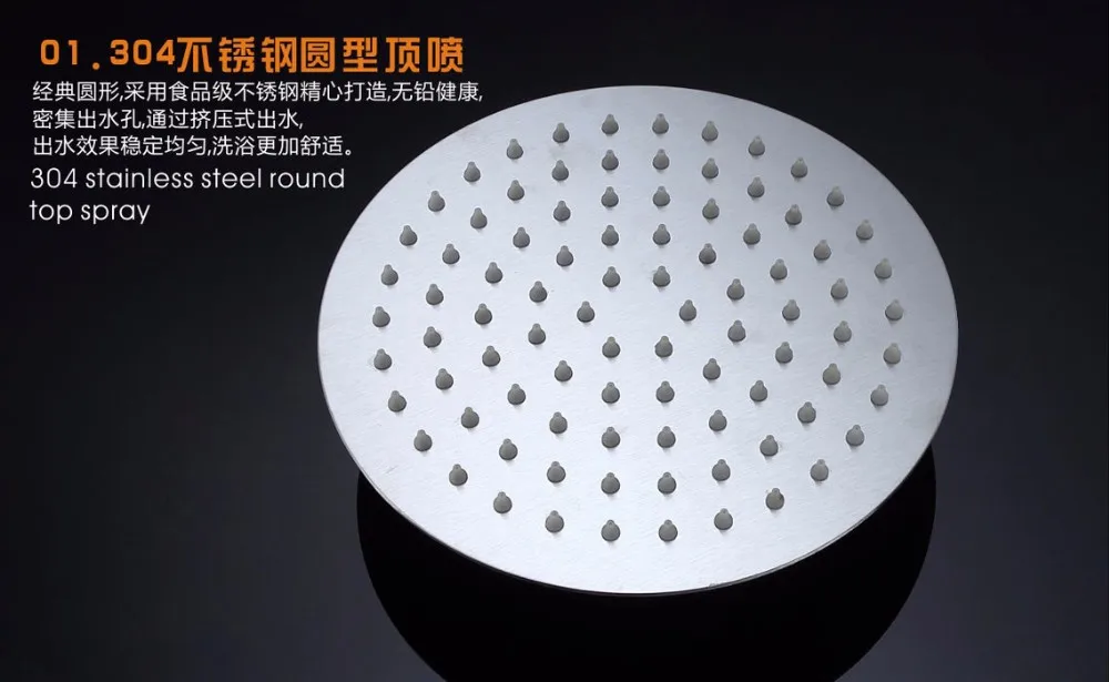 1. ultrathin SUS304 из нержавеющей стали топ спрей, diameter 200 мм,bост дизайн, сильное и равномерное. Lead-свободный, никогда не ржавеет, обработка поверхности рисунок, великолепный и благородный. использование воды пищевой силикон, уникальный дизайн воды на выходе для масштаба out. свинец, никогда не ржавеет, поверхность волочения проволоки обработки, великолепный и благородный.