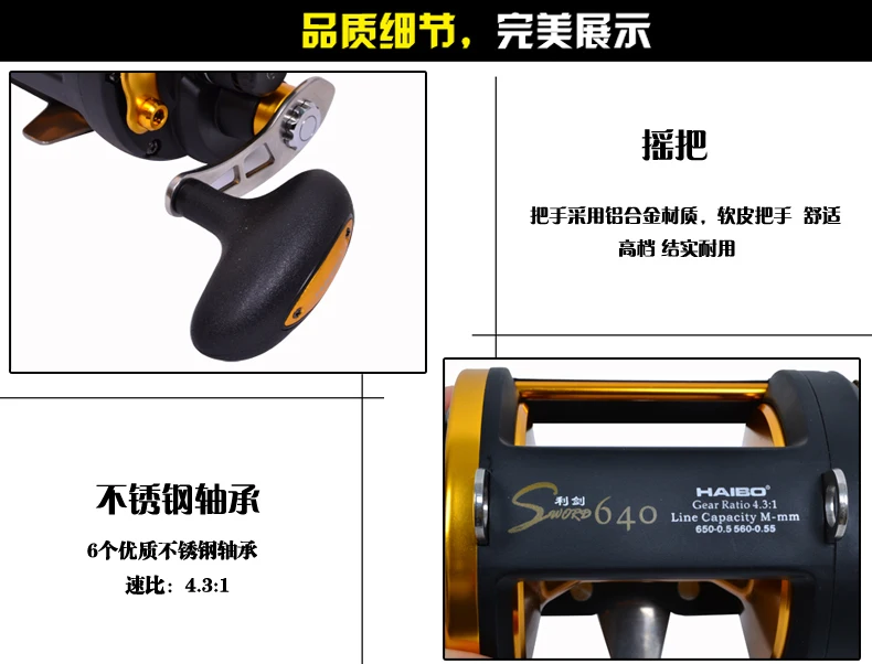 Haibo меч 640 4,3: 1 6 шарикоподшипников из нержавеющей стали, барабанный Троллинг, Рыболовные катушки, большая игровая Рыболовная катушка, бесплатная доставка