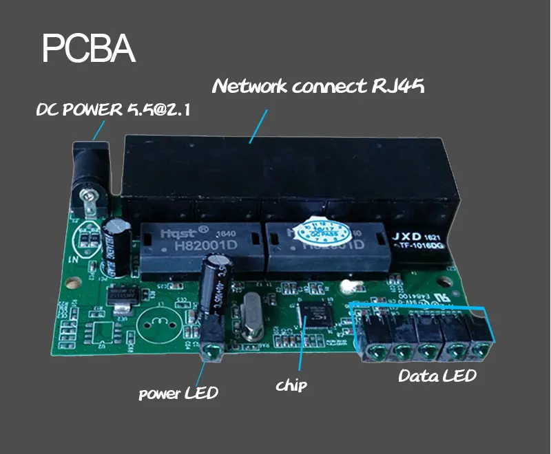 5*10/100 Мбит/с/акт соединения/света состояния; 1 * источника питания лампы
