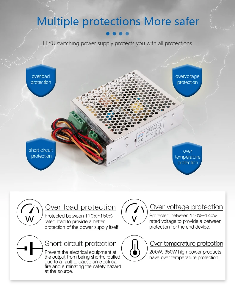 Тип защиты: выключение o/p напряжения, повторное включение для восстановления