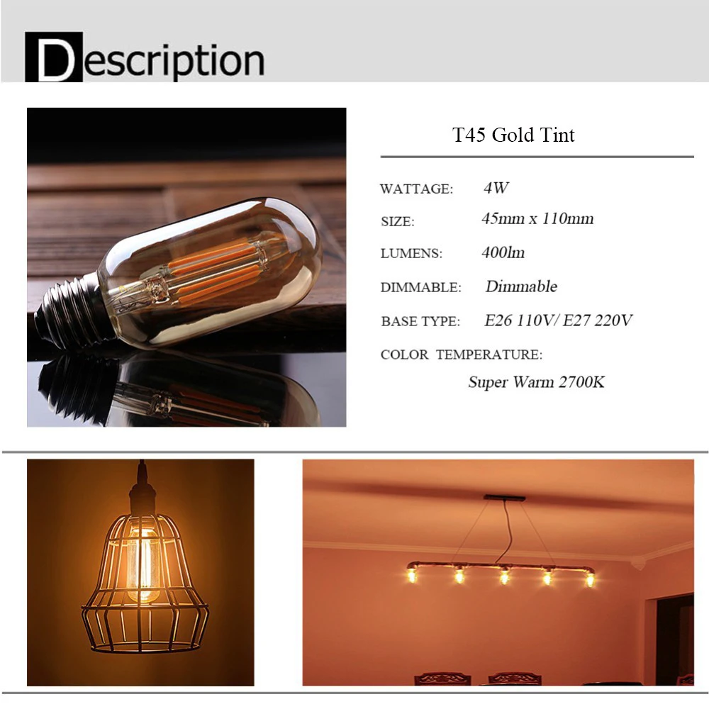 T45 edison,led edison t45, Золотая лампочка, e27 светодиодная лампа, светодиодный светильник, Светодиодная лампа e27, Светодиодная лампа накаливания, лампа накаливания, лампа накаливания с регулируемой яркостью, светодиодная лампа накаливания e27