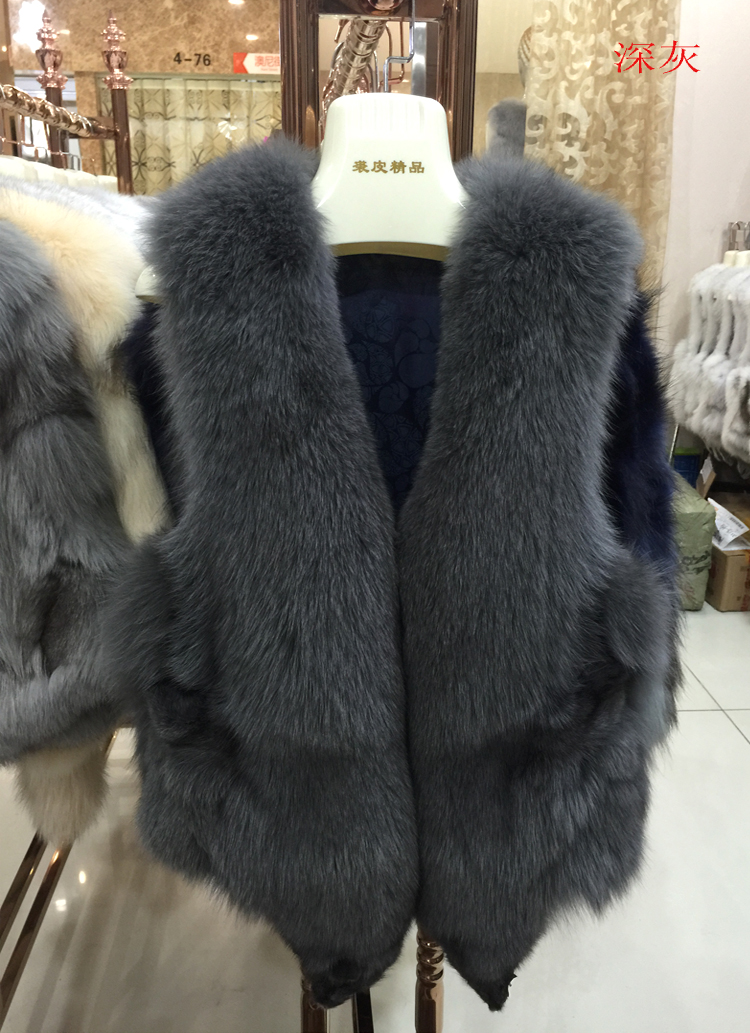 жилет Материал: Природный Фокс меховой жилет жилеты (Они сделаны из цельного куска синий мех лисы)