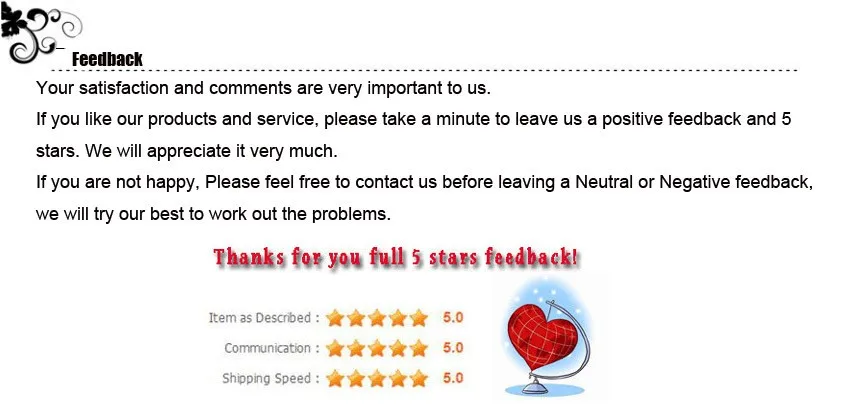 6. Before размещения заказа, пожалуйста, прочитайте все наши списки тщательно, если у вас возникли вопросы, пожалуйста, не стесняйтесь обращаться к нам.