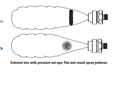 В основном получение тонкого распыления происходит путем увеличения давления воздуха или снижения давления жидкости, что приводит к высокому соотношению расхода воздуха к расходу жидкости.