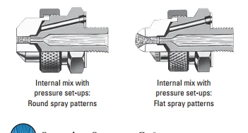 Каждая серия abaliable с напорная распылительная установка или сифон спрей настройкиКаждая установка обеспечивает специфический шаблон распыления с определенной емкостью и диапазоном охвата распылением.Наборы распыления взаимозаменяемы для каждой серии соплаКруглый спрей: удлиненный полный конусный круглый спрейШирокоугольный Круглый спрей: полый Конусный, широкоугольный Круглый распылитель360 круговой спрей: полые конусные 360 круговой спрей шаблонПлоский спрей: удлиненный плоский или лист-Тип s [рисунок лучаСдутый плоский спрей: Расширенный плоский или листовой спрей, отводимый от оси впускного соединенияКаждый набор распыления состоит из воздушной крышки и крышки жидкости