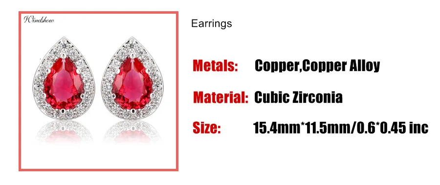 Windshow Pear Cut Red AAA CZ Zircon w/ White CZ Accent Teardrop Stud Earrings For Women White Gold Color Jewelry Orecchini Aros
