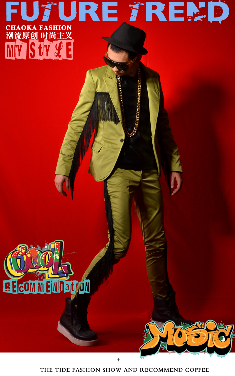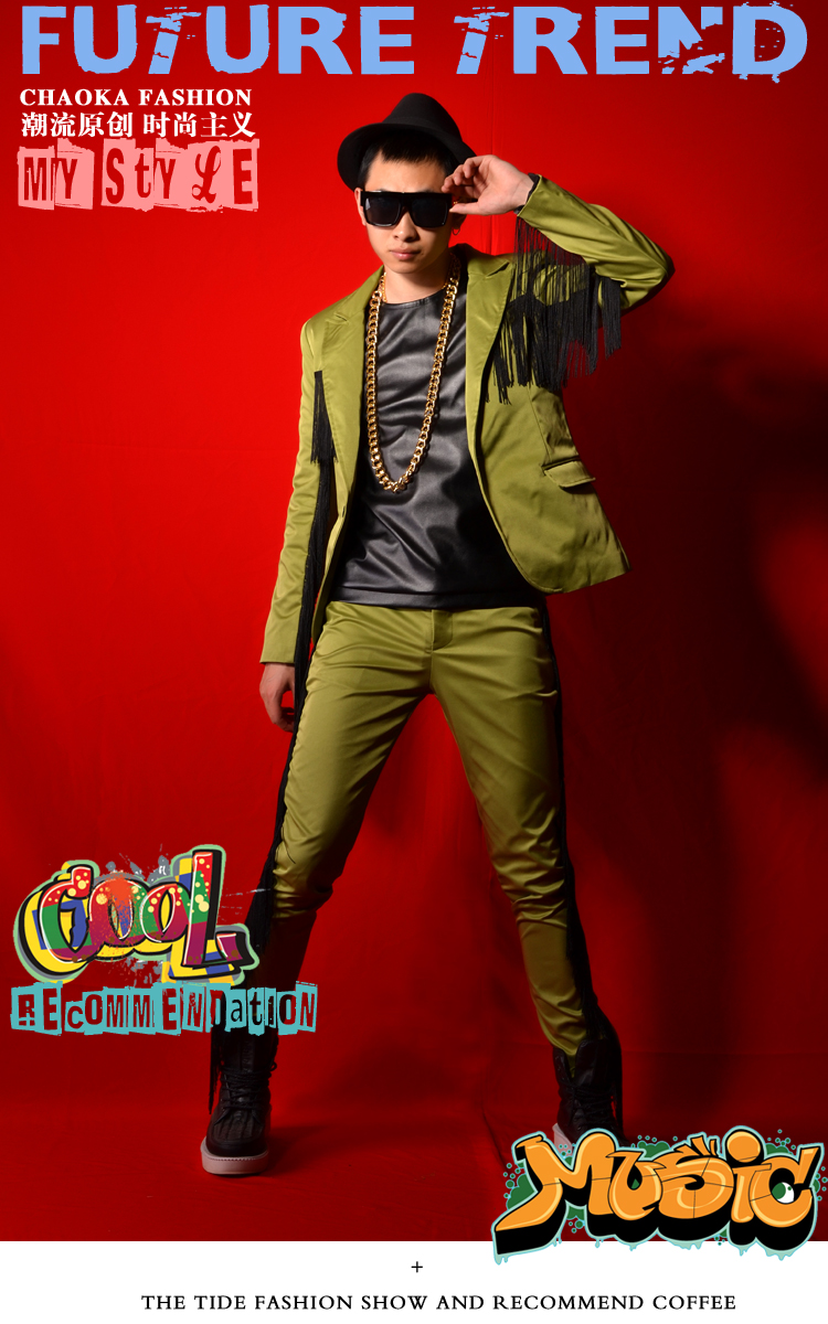 S-XXL! 2016 Новая мужская одежда модный GD BIGBANG диджей, чернильный зеленый компрессионный костюм, куртка, пальто для выступлений, костюмы для певиц