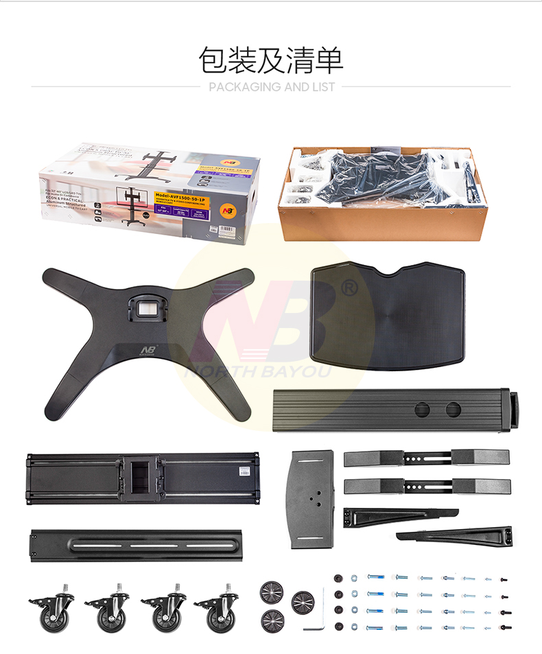 NB AVF1500-50-1P, алюминиевый сплав, 32 ~ 65 дюймов, передвижная тележка для телевизора, плоская панель, светодиодный жк плазменный телевизор, тележка с AV полкой и держателем для камеры