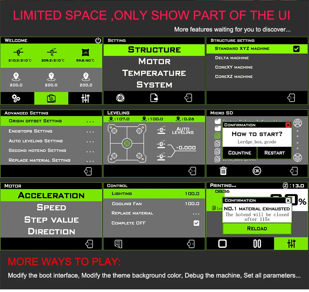 The LERDGE-X motherboard is the most basic motherboard. Due to the user’s more functional requirements, the LERDGE-X motherboard has been upgraded to the LERDGE-Z motherboard, adding an EX axis (changes to a 5-axis), which can be customized as XYZE, and some intelligence The breathing light recognizes the status of the machine and other functions.