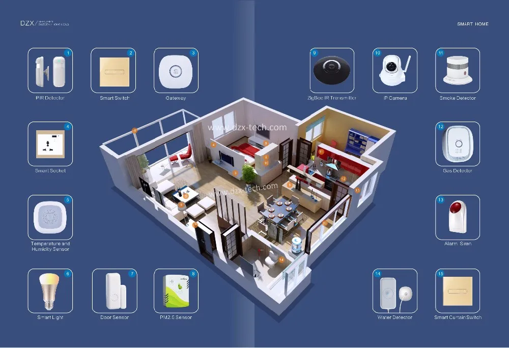 Группа DZX состоит из нескольких операционных блоков, расположенных в Гонконге и Шэньчжэне. Это частная высокотехнологичная компания с многолетним опытом в разработке и производствеУмная домашняя система охранной сигнализации, включает WIFI и GSM сигнализацию, PIR детектор, ip-камера, детектор дыма и газа, датчик двери и окна и т. д.