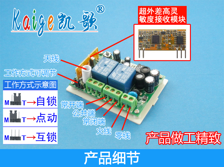 Плата приемника дистанционного управления компании подходит для электрических схем управления, таких как Противоугонная сигнализация, электрические двери и окна дистанционного управления, контроль сигнала, Промышленный контроль, подъемное оборудование и т. д. Релейные контакты всех модулей переключателей дистанционного управления независимо выводятся, что очень подходит для прямого управления различными нагрузками. Продукт использует технологию цифрового беспроводного кодирования, которая не имеет направленности, и переключатели не мешают друг другу. Компоненты цепи переключателя дистанционного управления 220V полны материалов. Печатные платы изготовлены из высококачественных двухсторонних печатных плат. Блок питания использует LNK304PN профессиональные чипы управления питанием, импортированные из США. Производительность стабильна, а потребляемая мощность мала. Производительность намного выше, чем у дешевых, которые обычно используются на рынке. Понижающая цепь сопротивления-емкости, предохранитель и Варистор эффективно защищают печатную плату, что значительно улучшает срок службы всего пульта дистанционного управления. Способность анти-помех и чувствительность приема супер-гетеродинного модуля намного выше, чем у обычных супер-регенеративных модулей. Покупатели могут купить после сравнения.