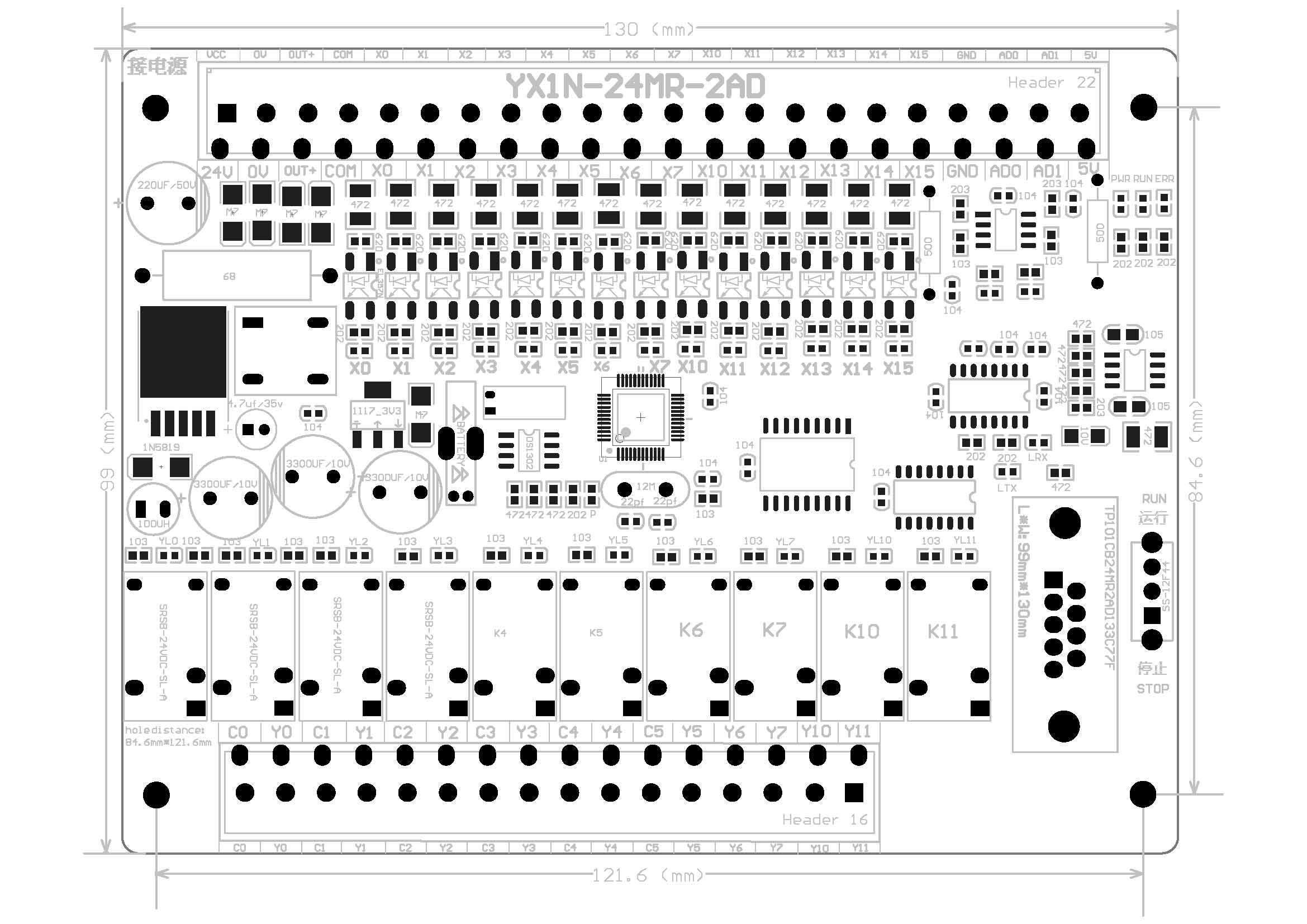 You can set the normal password can also set the super password, powerful super password, enter the super password can not be decrypted, only clear the PLC memory to clear the super password (clear PLC memory, program and password will be cleared together), super password, better Protect your labor outcomes. 1. Comprehensive, the system of anti-jamming processing, power circuit after a number of anti-jamming design, without fear of a variety of harsh electromagnetic interference working environment. 2. Use the powerful 32-bit high-speed ARM core CPU; can use the programming software FXGPWIN and GX Developer and GT-Works2 can be programmed to download \ upload \ debug \ monitor \ encryption \ connect text or touch screen \ PLC memory clear \ data Cell storage space clear \ bit component storage space to clear (no software conversion, and regular PLC download the same way)3.PLC board: Dimensions 99mm × 120mm × 25mm, the installation of screw hole diameter 3.2mm