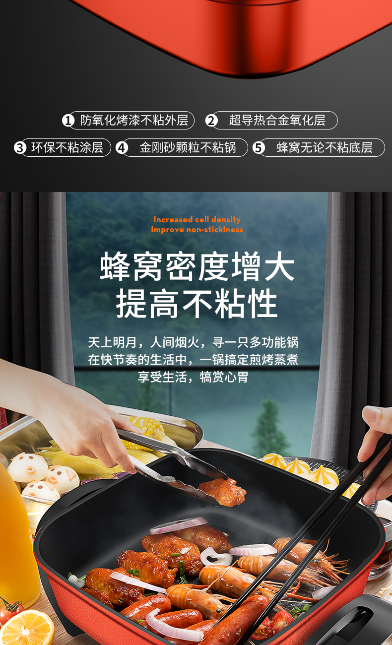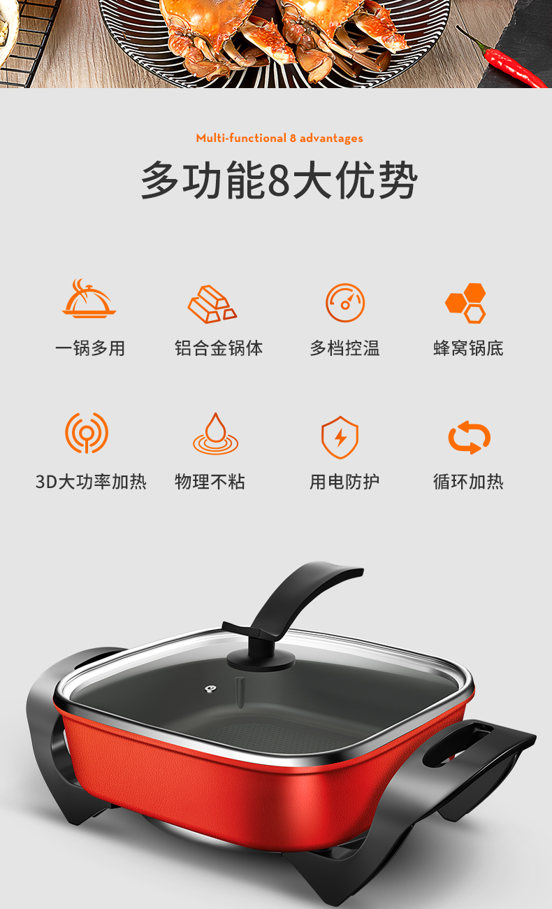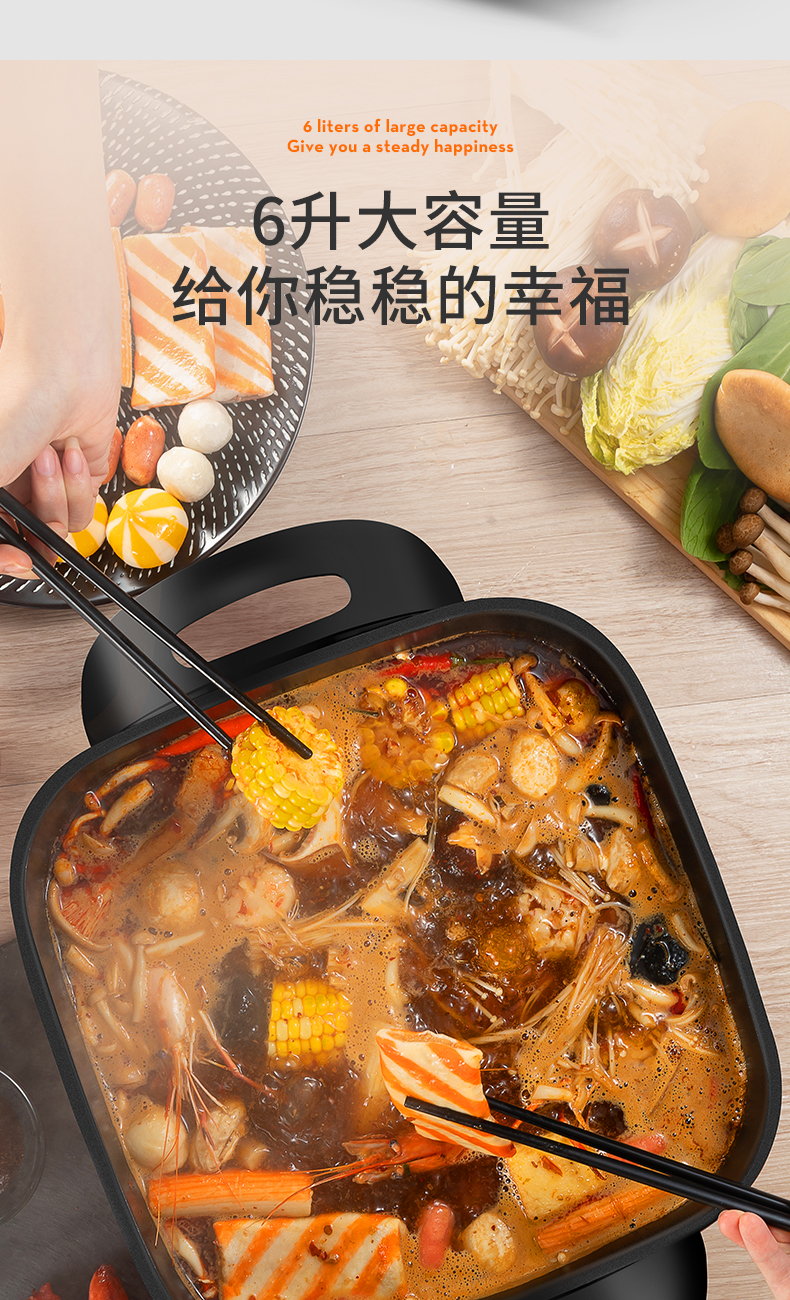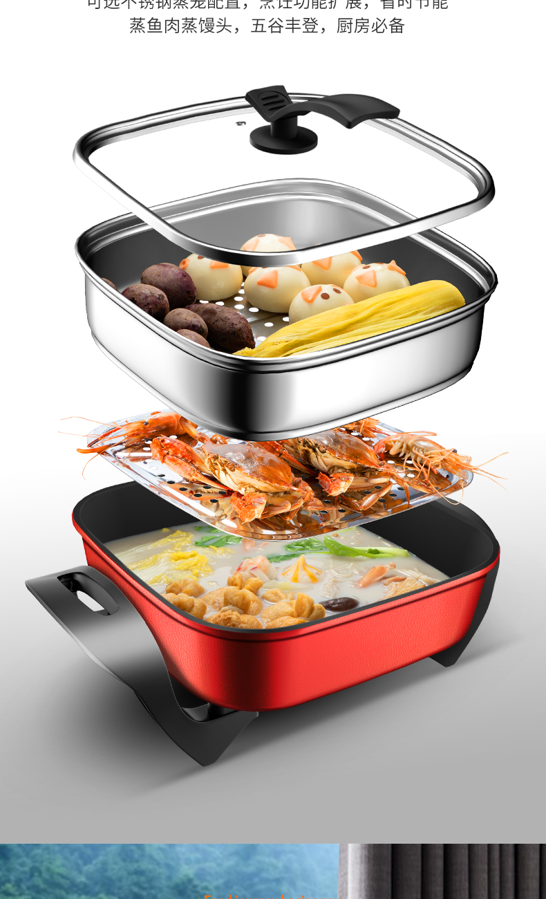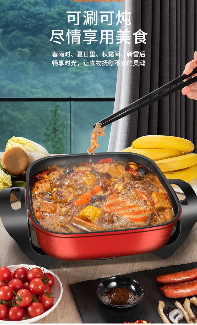 1360 Вт большая мощность электрическая многофункциональная плита жарки горячий горшок тушеная электрическая сковорода