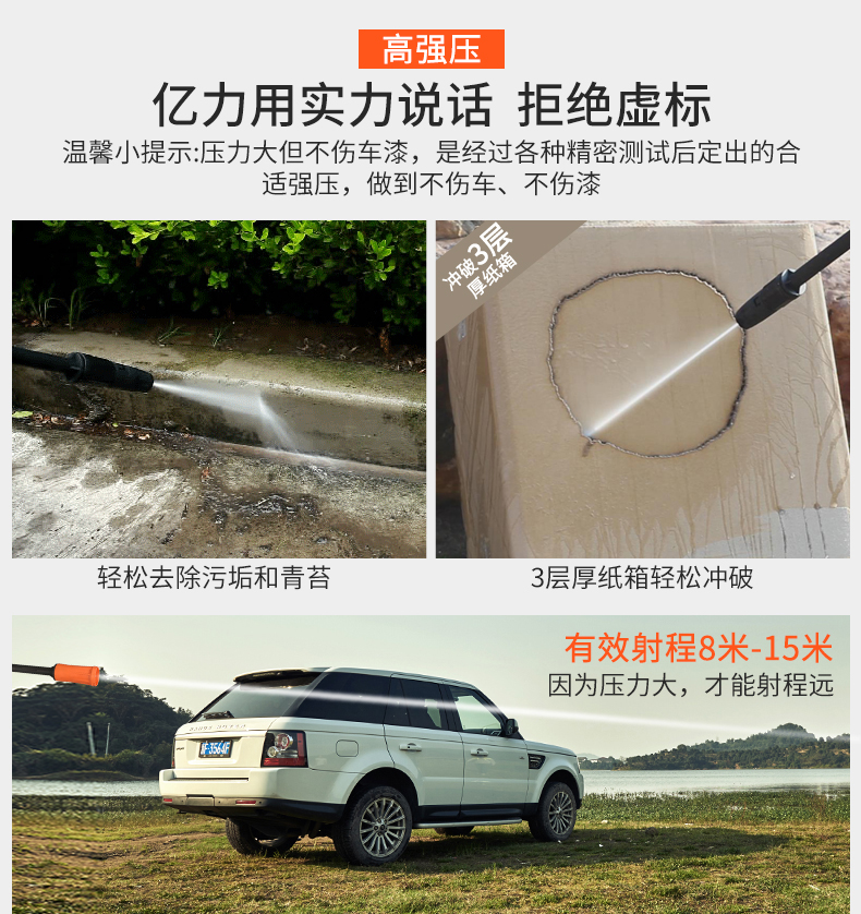 Особенности Портативный дизайн, с функцией остановки пистолета, свободная Очистка Высокопрочный материал пистолетов, прочный, взрывозащищенный, безопасный и надежный Регулируемый режим подачи воды: вентилятор и колонна Чем очистка садовой трубки может сэкономить более 80% воды, очистка более чистая, более эффективная С функцией самовсасывания Применимый объем Велосипеды, мотоциклы, электрические автомобили, автомобили Внутренний двор, стена, животноводство, уличная мебель, стеклянная комната и так далее Стандартные аксессуары Комплект стирального пистолета Шланг давления 8 м 1,5 м впускной шланг Соединитель водопроводной воды Быстрый соединитель