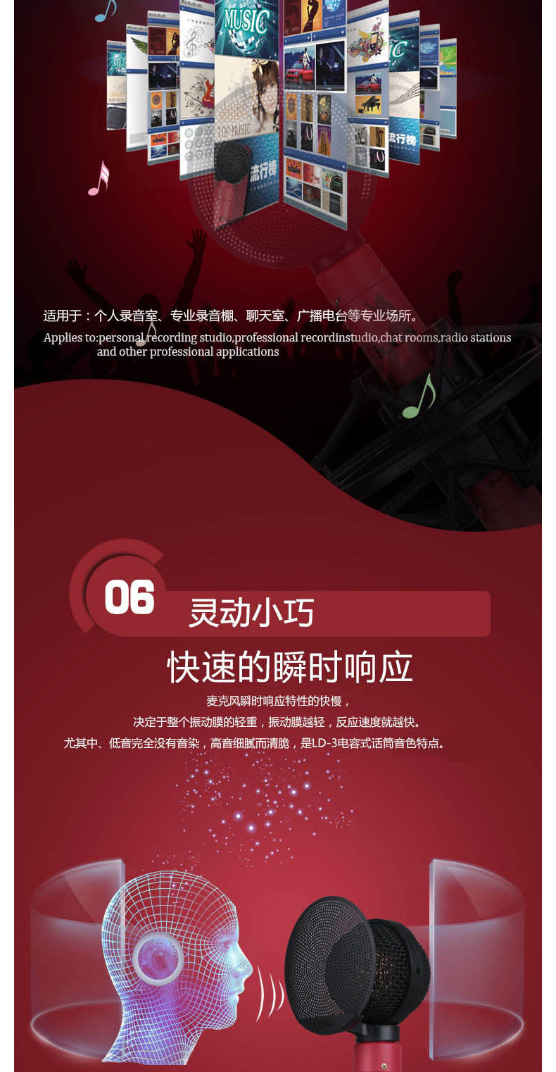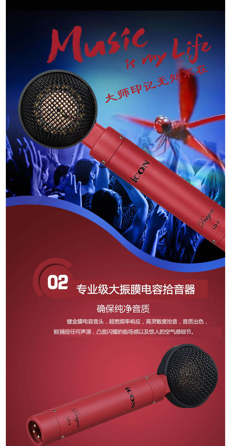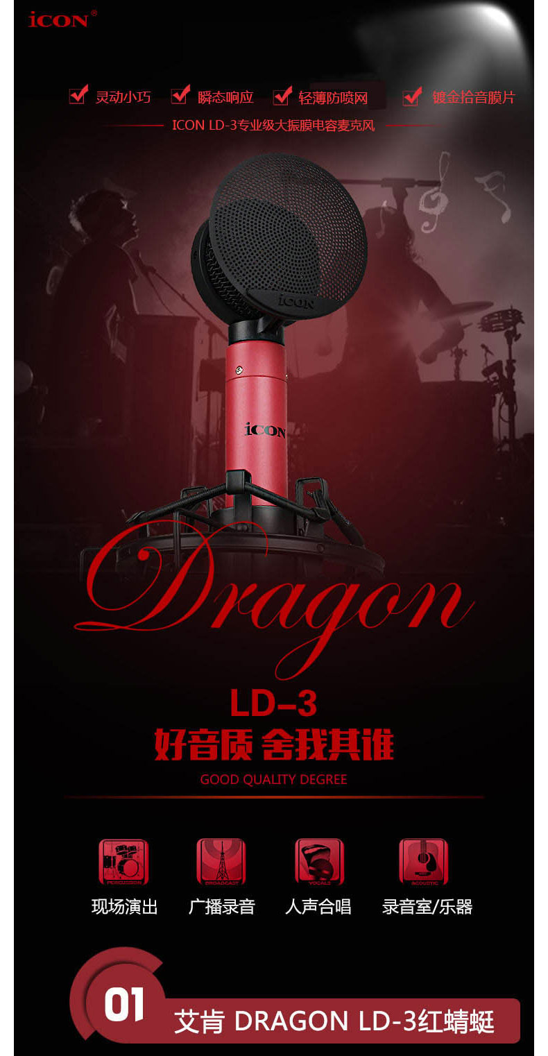 Оригинальный значок LD-3 Профессиональная студия большой диафрагмой Студийный конденсаторный микрофон для записи компьютера и вещания вокала и инструментов запись