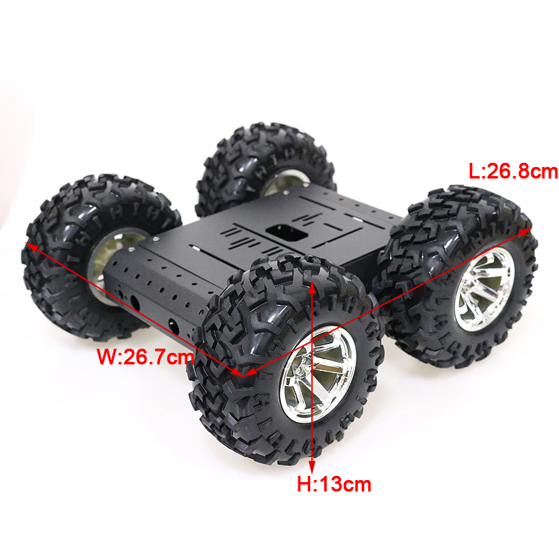 Название: C3R 4WD шасси автомобиля Корпус автомобиля: металл (алюминиевый сплав) Вес: 2,03 кг Колесо: 13 см резиновое колесо Размер: 26,8 × 26,7 × 13 см (длина × ширина × высота) Нагрузка: около 2-8 кг (зависит от двигателя)Особенности