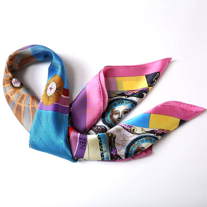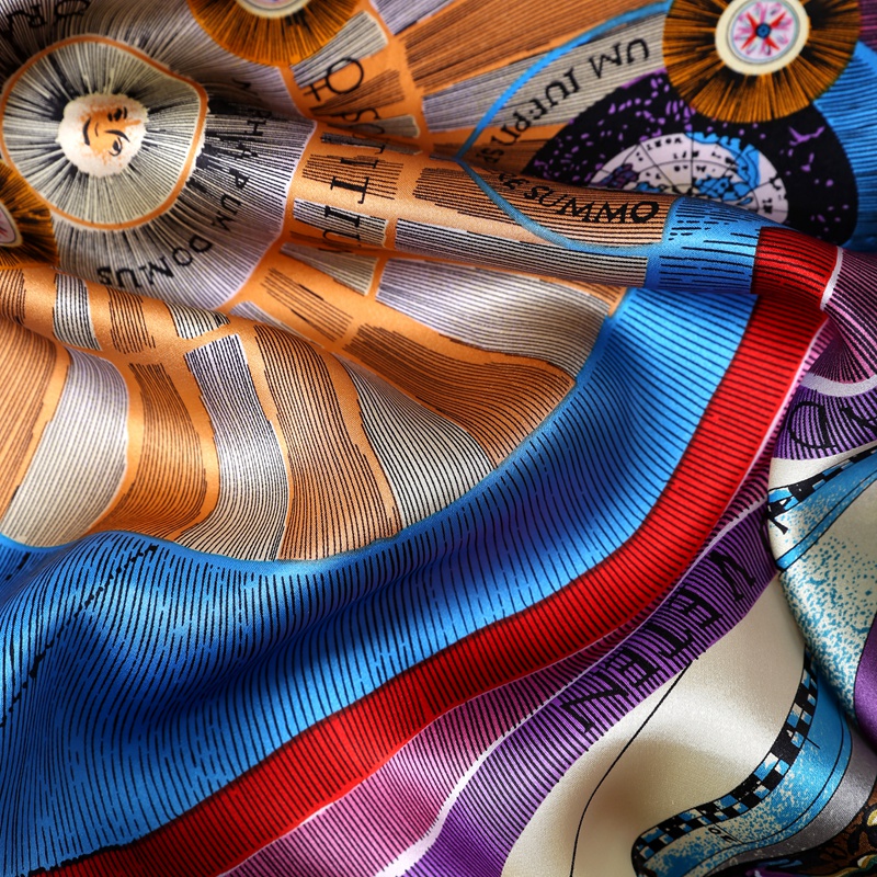100% шелковый шарф женский большой квадратный шелковый шарф шаль обертывания загадочная Созвездие печать хиджаб платок ручная работа 88x88cm