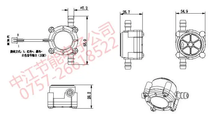 Характеристика импульса F = 98 * Q, F представляет частоту, Q представляет поток единицы подъема/минуты,Внутренний диаметр силиконовой трубки 5-7 мм, наружный диаметр 7 мм, диаметр впускного отверстия воды может быть 1,5-4 мм, покупатели могут выбрать свой собственный Диапазон потока. Внутренний диаметр 1,5 мм Диапазон потока 0,2-2Л/минВнутренний диаметр 3 мм Диапазон потока 0,3-4л/мин, а внутренний диаметр 4 мм Диапазон потока 0,3-6Л/мин.