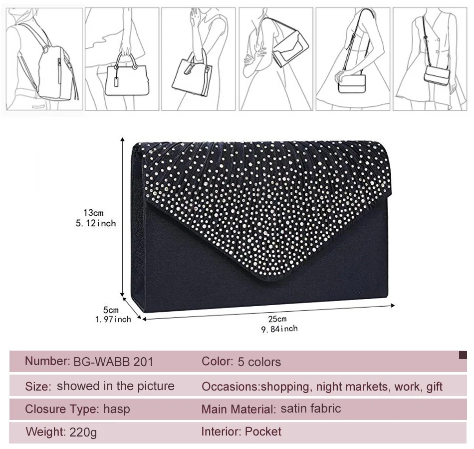 Достаточно места для повседневного использования, например, очков, кошелька, смартфона, косметических средств (Размер: 9,84*4,72*1,97 дюйма/25*13*5 см).