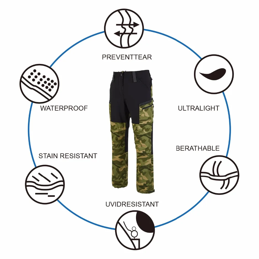 Кабриолет-Низ брючин застегивается на молнию для преобразования в более прохладные шорты. Отлично функционируют как брюки с длинными штанинами или шорты, обеспечивая полный диапазон движений