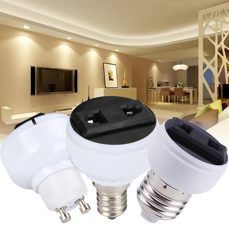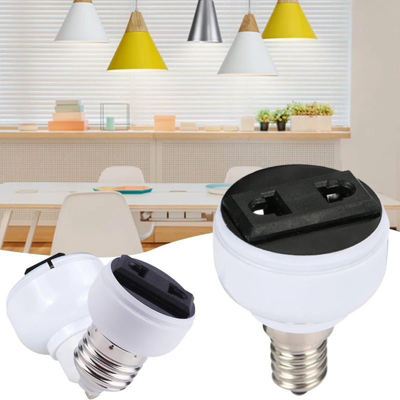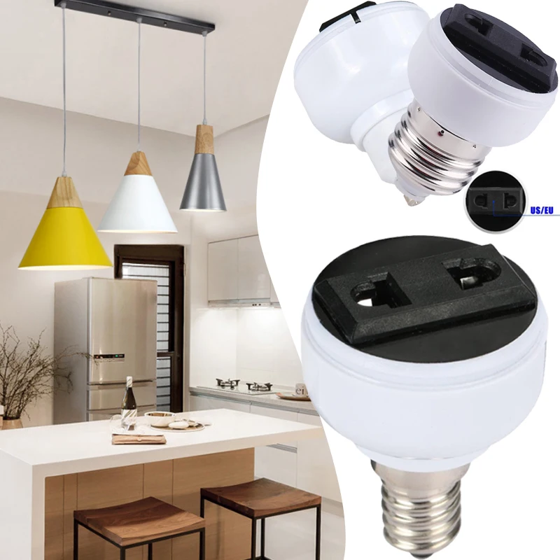 Использование: E14 преобразует в двухштырьковую розетку питания, винтовой светильник преобразует лампу в розетку ЕС/США