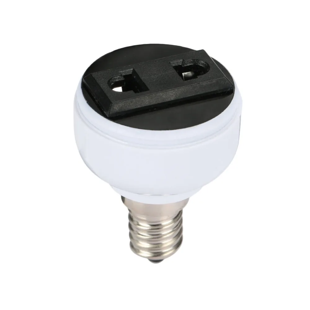 Он может преобразовать E14 основание к разъему питания, который может быть подключен к общей 2-контактный разъем.