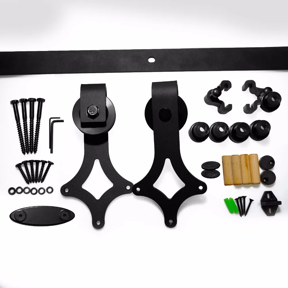 LWZH деревянное оборудование для раздвижной двери сарая комплект Кантри Стиль Черный Стальной роликовый трек ромбовидная Форма Шкаф Оборудование для одной двери