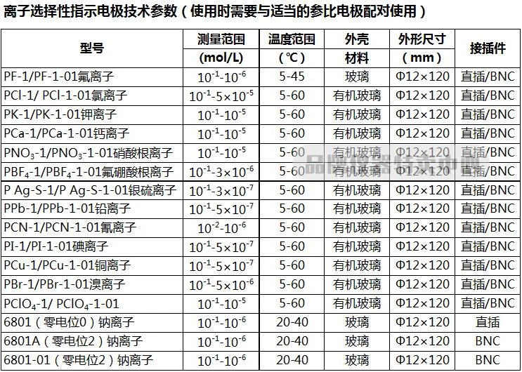 Ионно-селективный электрод является логарифмической ионной активностью в растворе был предоставлен потенциал и электрохимический чувствительный элемент линейной связи, электрохимический датчик для определения ионной активности или концентрации в растворе класса мембранного потенциала относится к мембранному электроду, его основная часть-индукция кончика мембранного электрода. Метод ионного селективного электрода является филиалом потенциального анализа, который обычно используется в прямом потенциале и потенциальном титровании. Его характеристика заключается в том, что он может использоваться для определения концентрации конкретных ионов в растворе; Диапазон применения широкий; Он не зависит от цвета реагентов, мутности и т. д.
