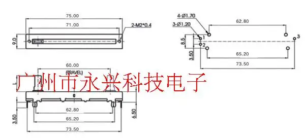 SC6021 B50K B503 75 мм моно слайд двухтактный потенциометр затемнение Тайвань микшер фейдер