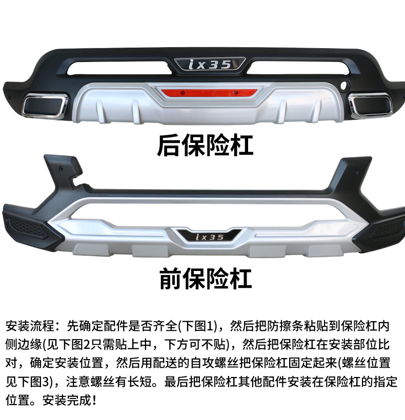 ПродуктКоличество: 1 комплект (передний бампер + задний бампер + крепежные детали)Продукт требует установки фитингов, мы будем оснащены полными аксессуарами в течение доставки посылки.