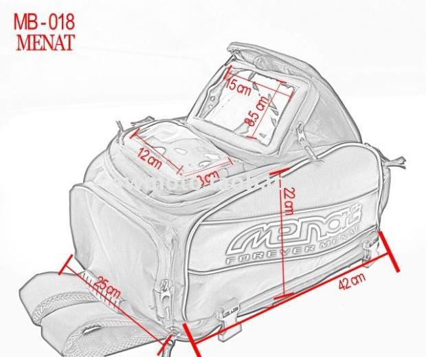 Название: MENAT большой Танк сумка/сумка Цвет: черный Материал: импортная Водонепроницаемая нейлоновая ткань, ткань Оксфорд, 1680 плотный водонепроницаемый чехол + + (с четырьмя сильными магнитами) Область применения: 1. Для легкой разборки, рюкзак, сумочка, сумка, сумка на бретелях, упаковка из четырех 2. Водонепроницаемый, износостойкий 3. В упаковке четыре кармана, соответственно, для переноски небольших предметов, таких как IPAD, мобильный телефон, кошелек, перчатки, минеральная вода и другие напитки. 4. Верхний карман может быть помещен в мобильный телефон/IPAD, при навигации 5. Эта посылка гарантирует, что магнит силы остается прочно на баке со скоростью более 120 км в час 6. Может держать полное лицо. Номер модели: ASTARS TANK BAG MB002 Функции: 1. Четыре кармана в одной сумке. 2. Защита от воды. 3. Можно поместить внутри мобильного телефона/IPAD на верхнюю сумку в качестве GPS. 4. Может использоваться в качестве футляра, упаковки, сумки или висячей сумки. 5. Каждая сумка поставляется с 4 сильными магнитами. 6. Он поставляется с 3 м светоотражающими линиями для обеих сторон, более безопасное вождение ночью.