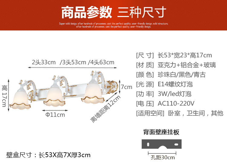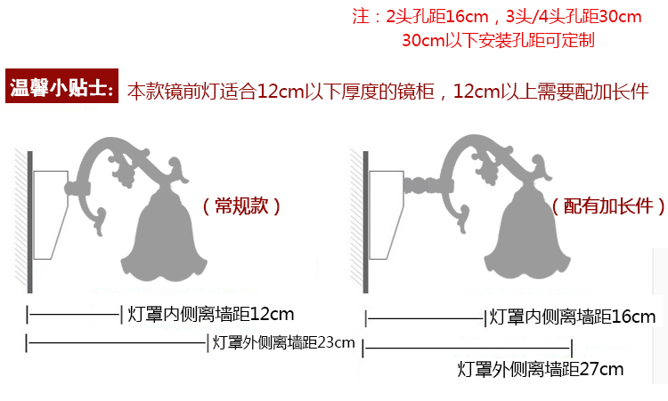 * Размеры:2 головы настенный светильник около шириной 33 см * высота 17 см