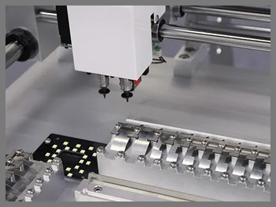 Он имеет двойные головки, 44 гнезда подачи (все 8 мм), систему видения и гибкую систему позиционирования, которая подходит для прототипирования, производства небольших и средних пакетов с стабильными характеристиками и доступной ценой.