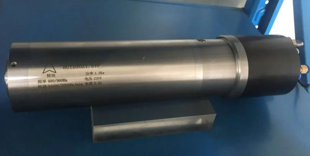 Тип шпинделя 80TD24/30Z2.2A Диаметр 80 Скорость 24000/30000 об/мин Мощность 2,2 кВт Напряжение 220 В/380 В Ток 5.5A Частота 400/500 Гц Луб Смазка Круто Водяное охлаждение Вес 20 Крутящий момент 0,55/0,88 нм Цанга ISO20 Цанговая гайка 3,175-12,7 Срок гарантии Подшипники = полгода другие детали в год
