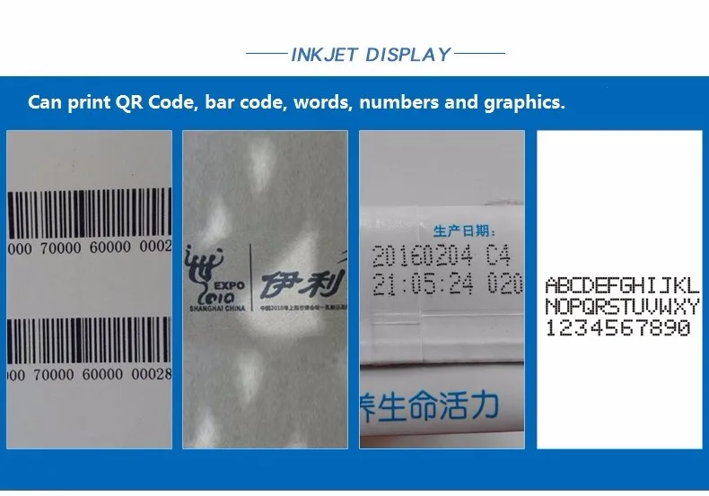 Он используется для печати даты производства, номер партии, штрих-код, а также логотип торговой марки, анти-поддельный знак и китайские слова, заключается в реализации закона о здоровье и выпускного вечера-о модернизации упаковочного оборудования.