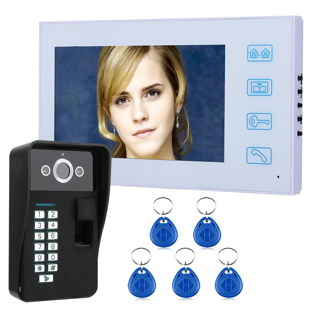 7 "TFT Распознавание отпечатков пальцев RFID пароль видеодомофон домофон дверной звонок с ночным видением охранная CCTV камера домашнее наблюдение
