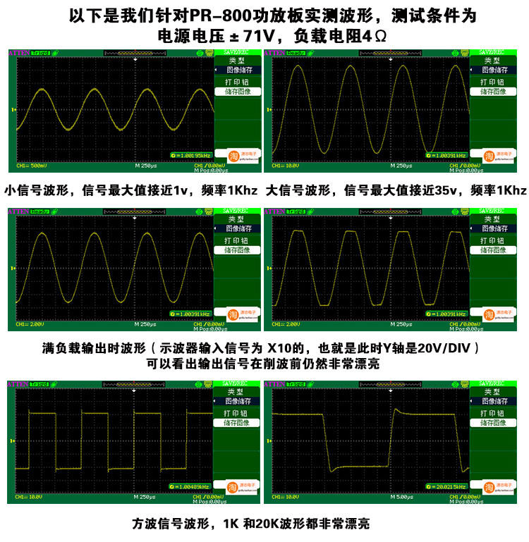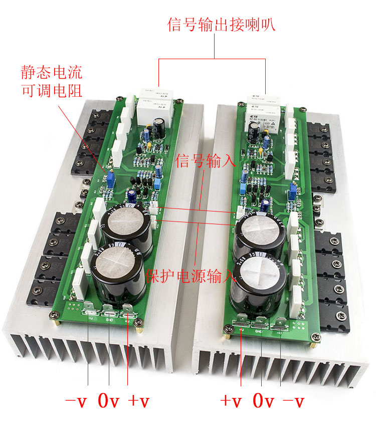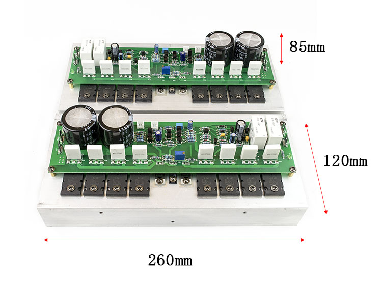 Информация о плате усилителя мощности:Напряжение источника питания: постоянный ток + 20 В до + 95 в рекомендуется в + 40-80 В, выход трансформатора-это напряжение переменного тока, напряжение переменного тока необходимо вводить на плату усилителя мощности после выпрямления фильтра. Защита рога источник питания AC9V-15V (AC одиночное напряжение), трансформатор выход прямой вход.Эффективная Выходная мощность: 500 Вт/8 Омега (+ 95 в источник питания) 1000 Вт/4 Омега (+ 95 в источник питания) 1000 Вт/2 Омега (+ 65 в источник питания), напряжение конденсатора 80 в на плате усилителя мощности, например, потребность в более высоком напряжении источника питания, необходимо заменить более высокую емкость напряжения. Рекомендуемая нагрузка 2 Ом не более + 65 в. Выходная мощность в основном определяется напряжением питания и сопротивлением рога. Чем ниже используется напряжение, тем меньше мощность.Мощность класса А: 100 Вт (RMS) + 45 в источник питания, нагрузка 8 Ом, общий ток покоя 2.5AПолное гармоническое искажение по уровню поверхности: <0,01 10 Вт/8 ОмегаЧастотная характеристика: 0 Гц-160 кГц (-3 дБ)Коэффициент конверсии: 25 в/СШАОтношение сигнал-шум: >95 дБКоэффициент усиления: 40 разРазмер силовой пластины: 245 мм x 65 мм x 30 мм x 2 (один размер печатной платы)Размер радиатора 260 мм x 120 мм x 80 мм x 2 (блок).Цена: 258 юаней, включая две платы усилителя мощности, одну плату и один канал, с фильтрующим конденсатором, силовой трубкой и без большого радиатора.PR-800 Описание конфигурации классификации:PR-800 Плата усилителя мощности оригинальная кнопка включения для Toshiba TTA1943, TTC5200, фильтр конденсатор с алюминиевой крышкой, 4700 мкФ/80v, в дополнение к оригинальному труба силы, PR-800 Плата усилителя мощности может также другие мощности трубы, такие как triple 2SA1695/2SC4468 2SA1295/2SC3264, на MJW0281/MJW0302 MJL4281/MJL4302 и так далее, в основном продажи на рынке триода высокой мощности. Его можно использовать. Он также может заменить более качественные фильтрующие конденсаторы. Если нам нужно заменить эти силовые трубы, мы можем связаться с нами.Нет радиатора: