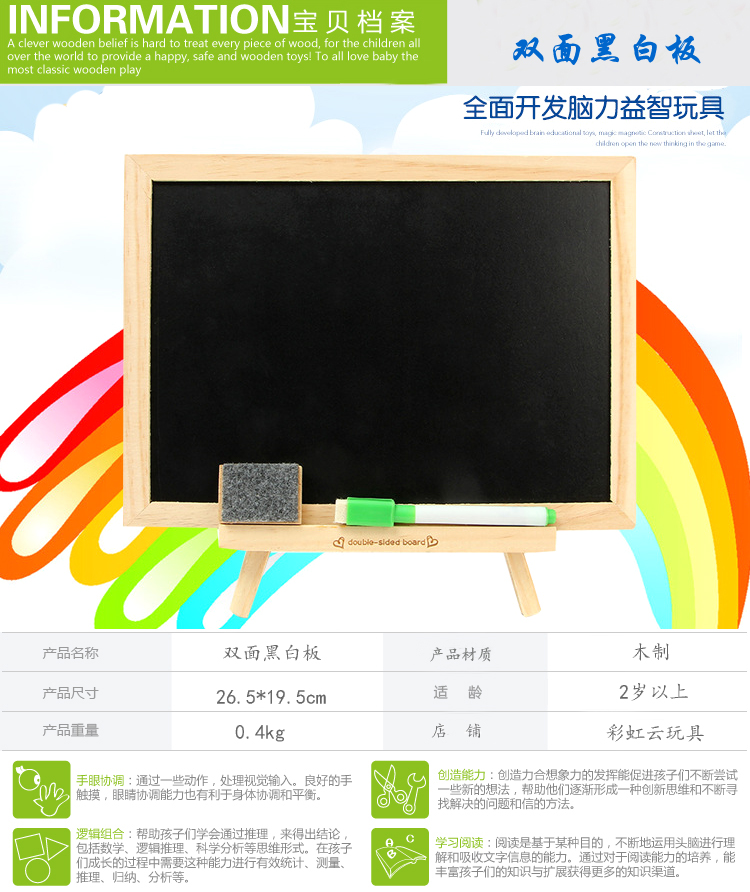 Двухсторонняя черно-белая доска: 26,5 см * 19,5 см