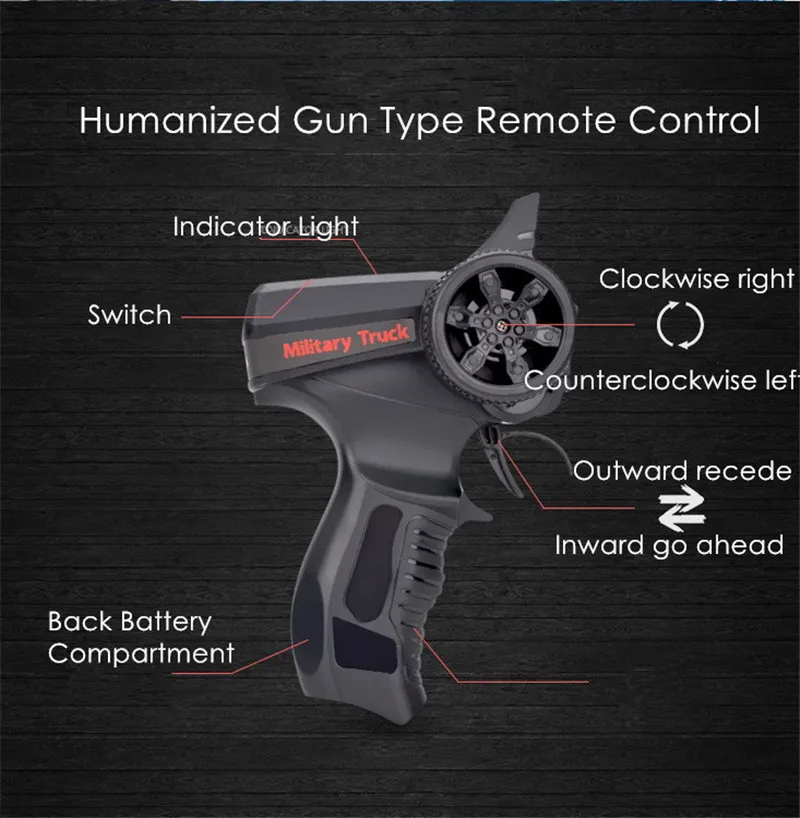1 х грузовик (батарея в комплекте), 1 х передатчик, 1 х usb кабель для зарядки