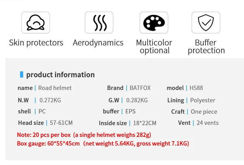 Спецификация: Размер: 57-61 см Вес: около 280 г Материал: ПК + EPS + сетка от насекомых + регулируемые поля Отверстия для воздуха: 22 Внутренняя ширина: 17,5 см Структура: внешняя прочная оболочка из поликарбоната для защиты от ударов и внутренней ЭПС может хорошо поглощать удар. Характеристики продукта: 1. Подходит для дорожного велосипеда, для мужчин и женщин. 2 он прошел сертификацию CE EN1078 3. Прошел испытание безопасности 4. Пена EPS была утолщена. Преимущества: Он имеет хорошую вентиляционную функцию с воздушными отверстиями и хорошую защитную производительность, потому что он был специально разработан для спортсменов на выносливость. Внутренняя система ЭПС shock-release была введена. И мы использовали арамидное волокно для повышения прочности.