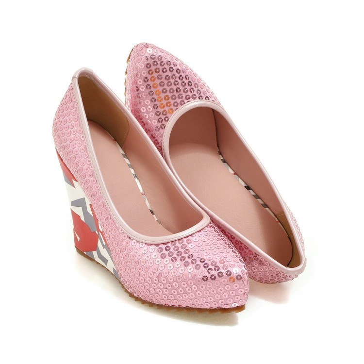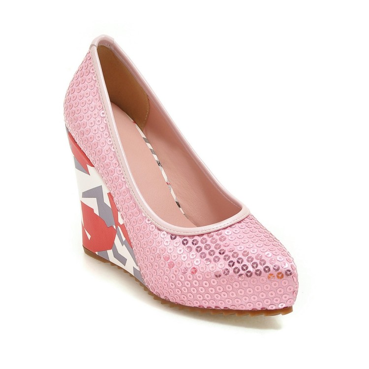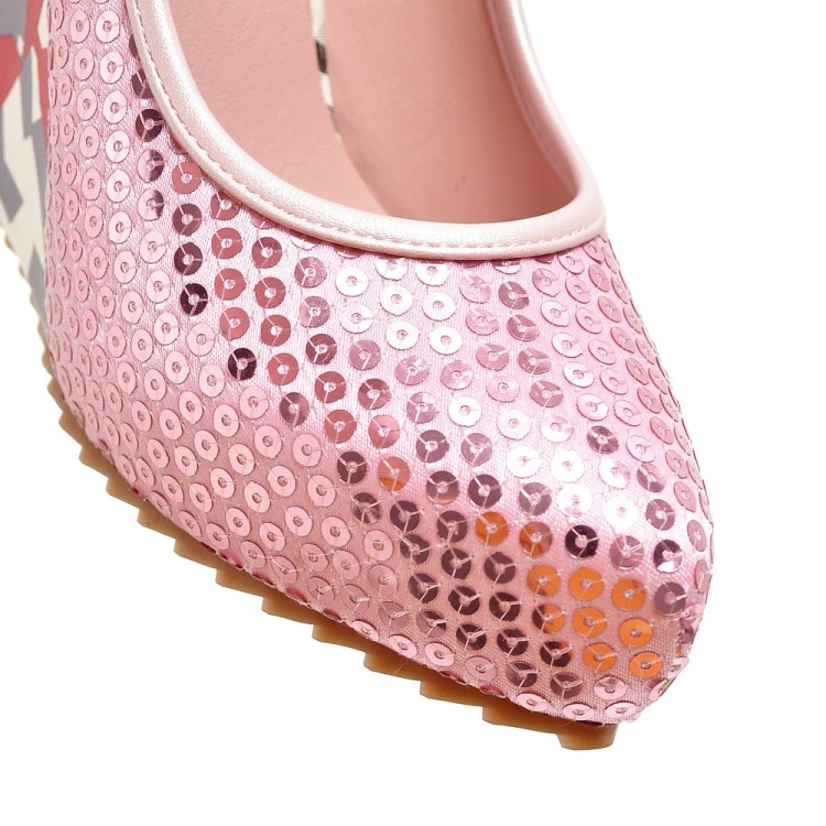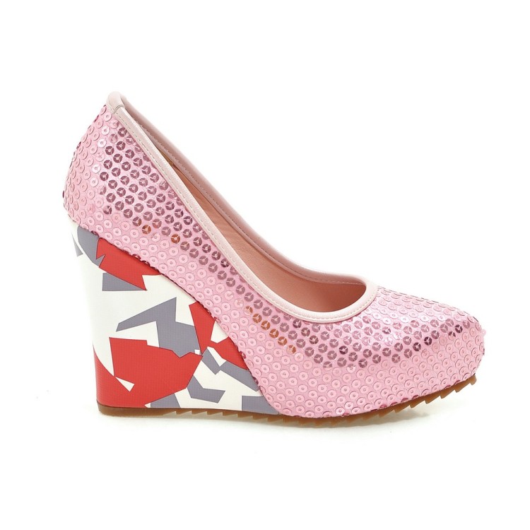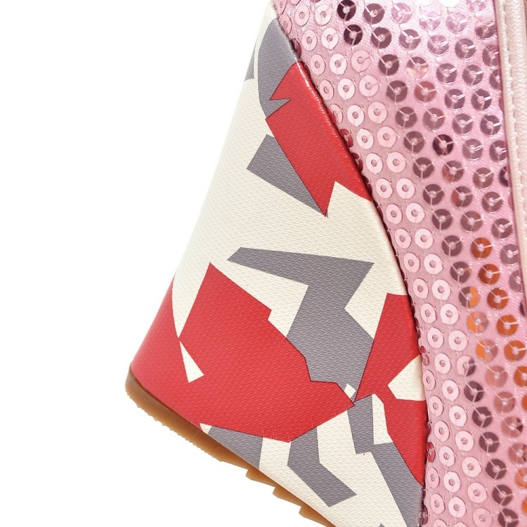 Модные свадебные вечерние туфли на платформе с блестками; Женские туфли-лодочки на высоком каблуке с принтом; Большие размеры 33-43; WP1105