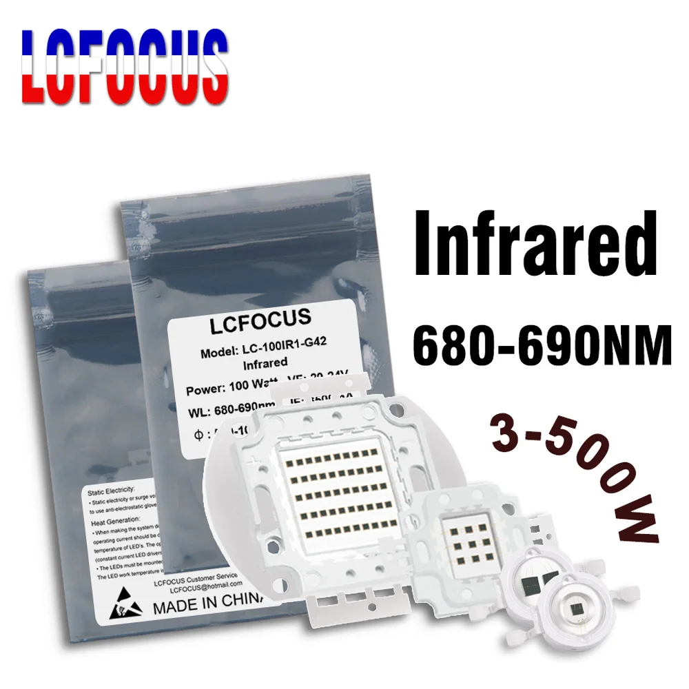 Высокомощный светодиодный красный чип 680nm 690nm 3W 5W 10W 20W 30W 50W 100 W 300W Инфракрасный светильник COB 3 5 10 20 30 50 100 W