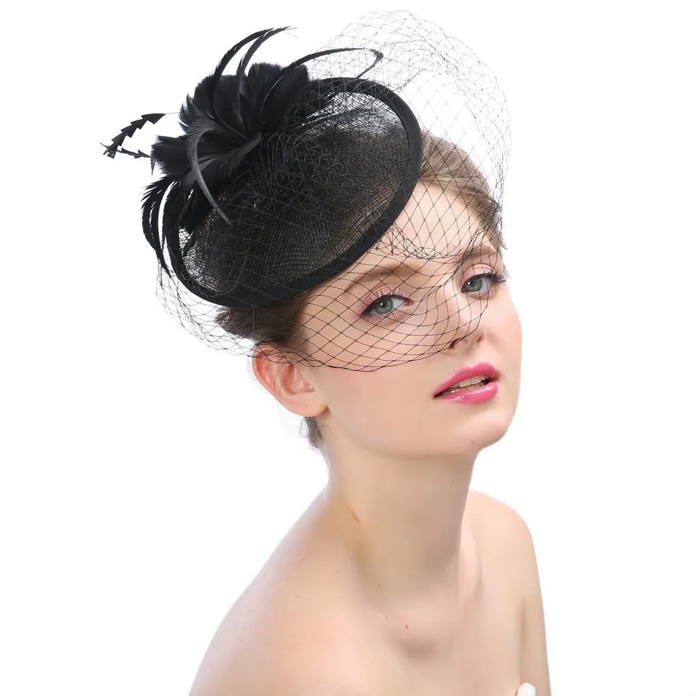 Новое поступление Свадебный темперамент головные уборы перо шляпы белье банкет Чистая Пряжа Вуалетка Свадебные шляпки для невесты Шляпы