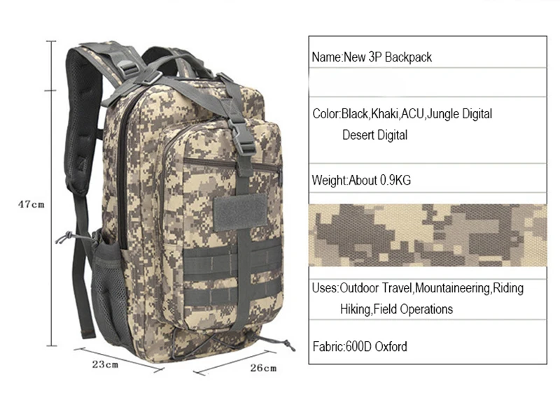 Использование: многофункциональный рюкзак, плечи, туризм, рыбалка, путешествия, кемпинг, водонепроницаемый, спортивная сумка На открытом воздухе, камуфляжный тактильный военный армейский рюкзак для альпинизма и путешествий