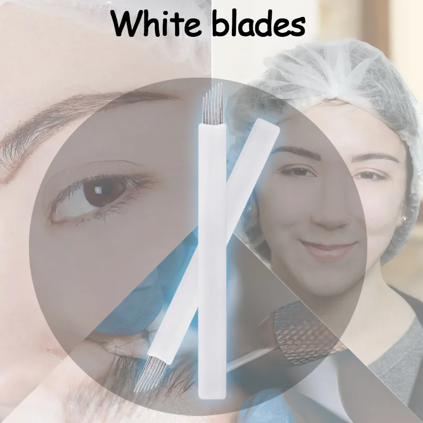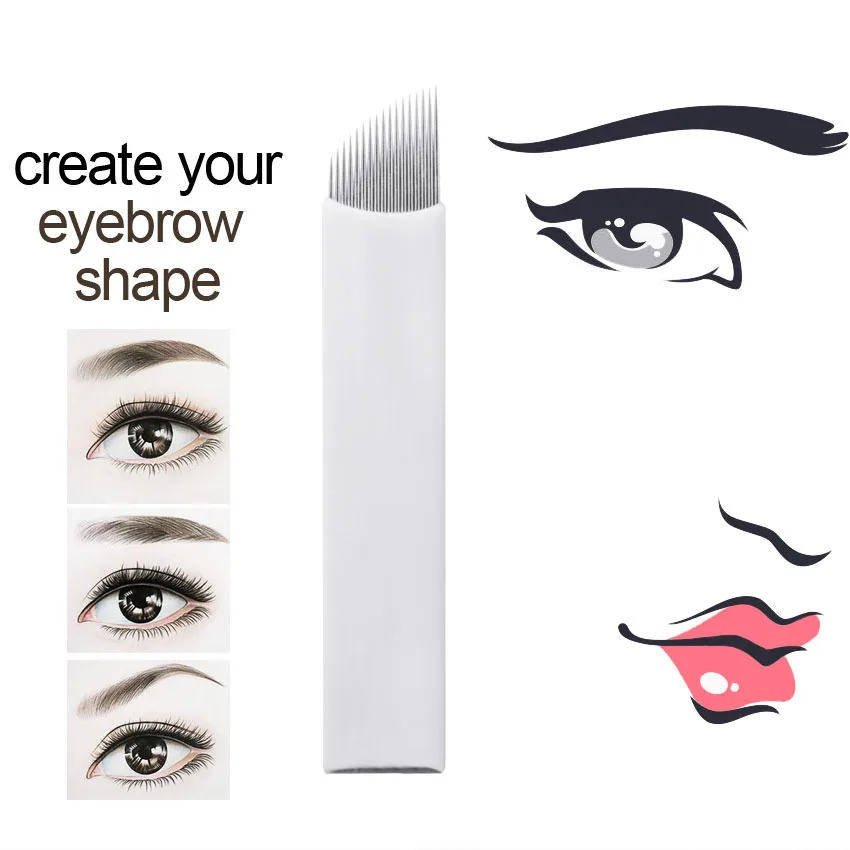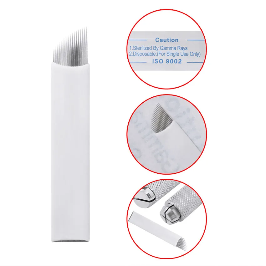 Eyebrow Microblading Needles 200Pcs Lip Liner Permanent Makeup 3D Embroidery Sterilized Disposable Tattoo Blades for Manual Pen Inks Tattoo Needles Tools